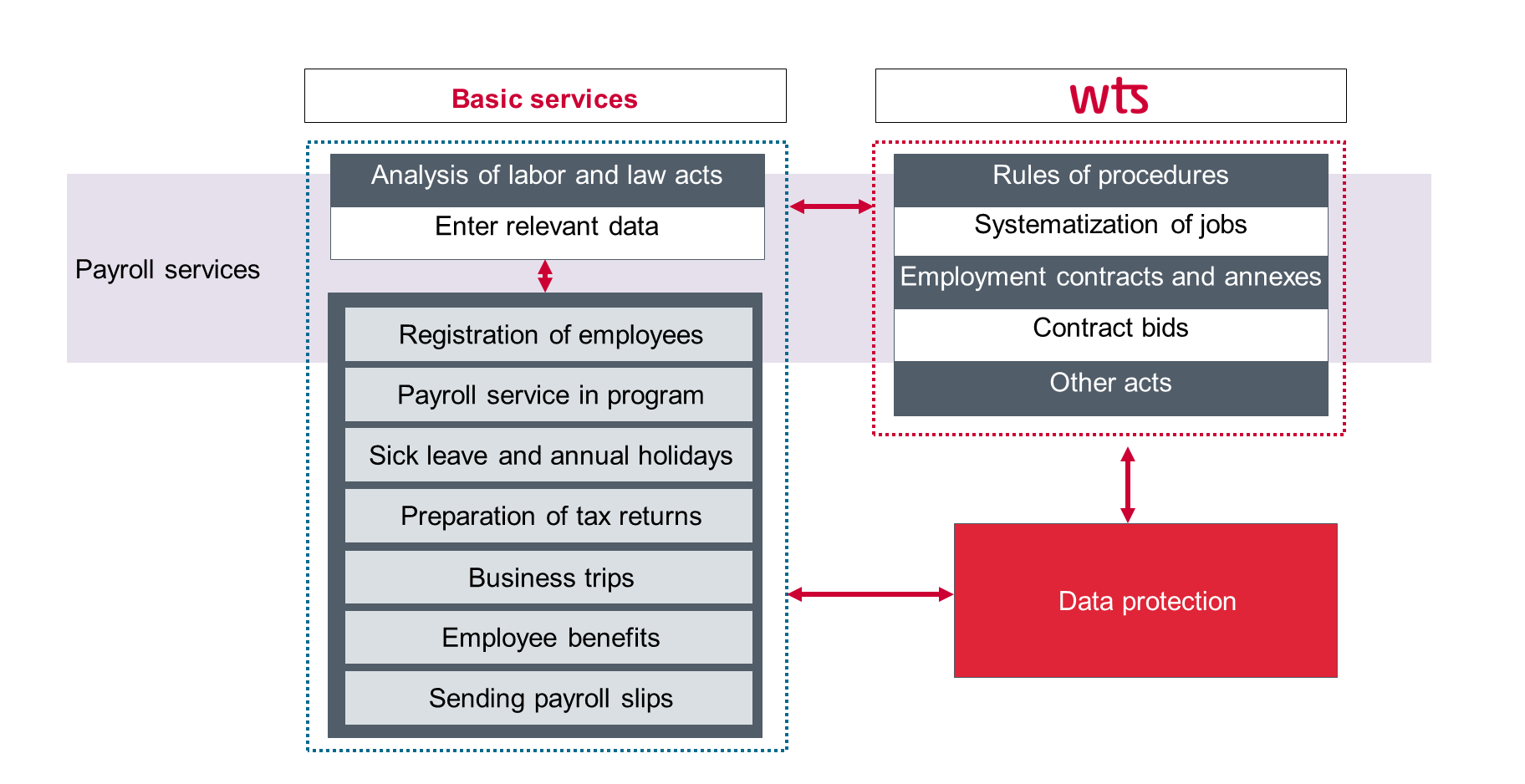 In order to minimize the risks of its clients, WTS team provides a wide range of services related to the calculation of salaries, preparation of documentation related to salaries and filing tax returns: